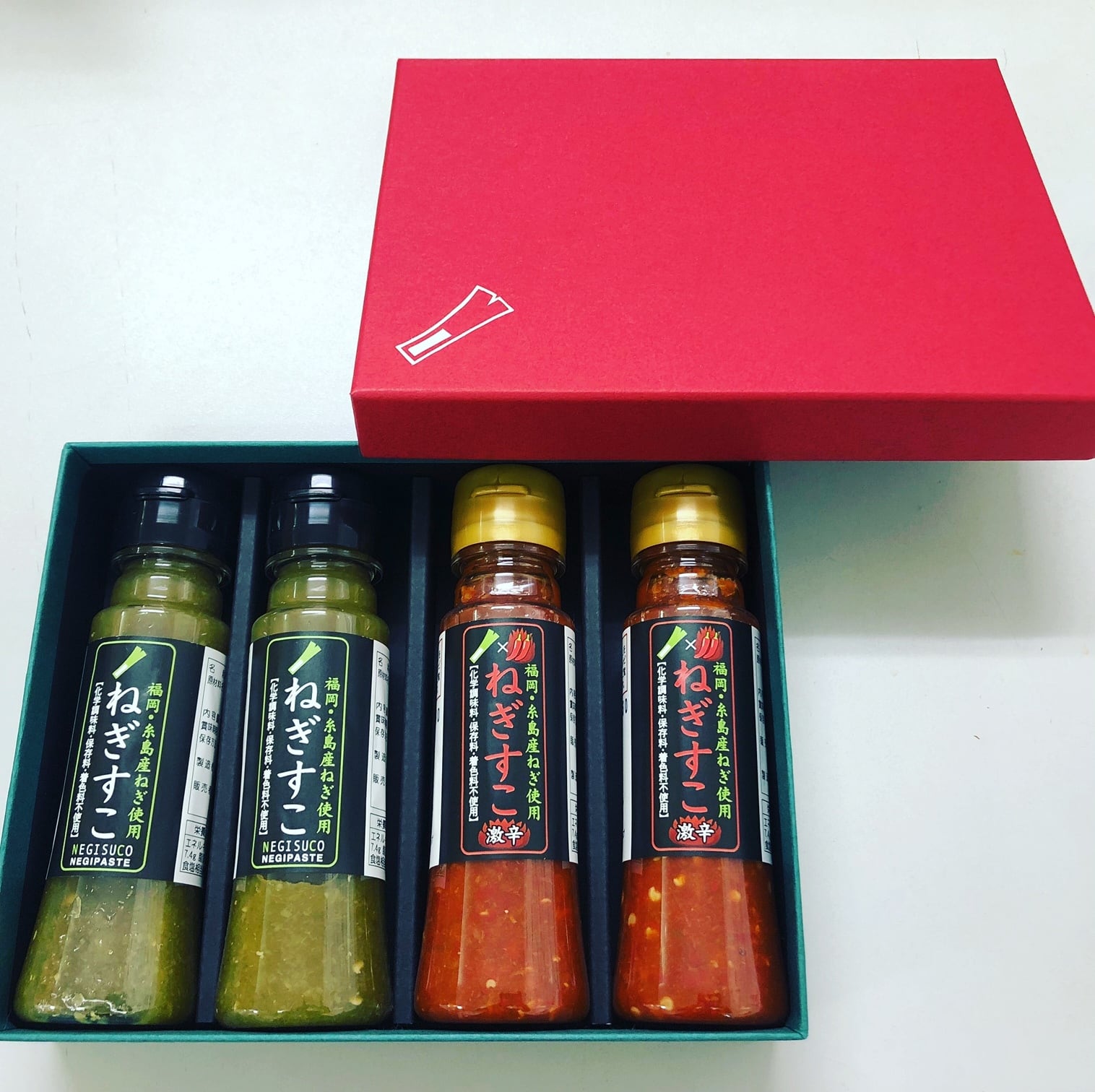 ねぎすこ80g×2本、ねぎすこ80g(赤)×2本、合計4本のセットとなります。